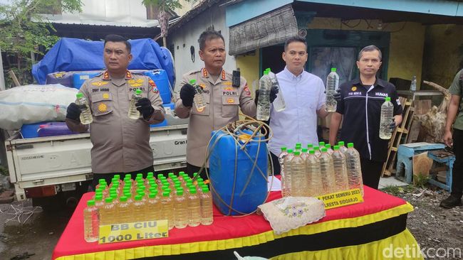 "Barang bukti yang disita 1.000 liter miras jenis ciu dengan kadar alkohol 25 persen serta puluhan botol, dan jeriken berisikan miras jenis ciu," jelas Kusumo.