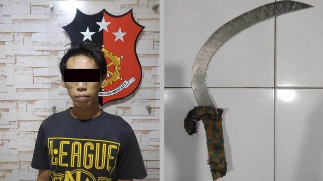 "Kami lakukan penangkapan dan penggeledahan di tempat tersebut, ditemukan barang bukti sebuah sajam jenis celurit yang gagangnya dibalut kain," imbuhnya.