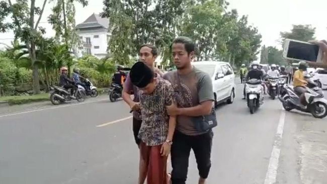 Hal itu terungkap dari rekaman video amatir warga sekitar lokasi. Dari video terlihat dua orang pria menggunakan kopiah hitam dan sarung diamankan polisi.