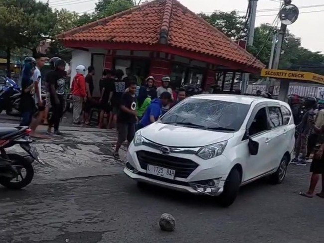 Karena takut di amuk masa, para pelaku mengunci pintu mobil. Warga yang geram pelaku tak mau turun kemudian melampiaskan amarah dengan memecah kaca mobil tersebut.