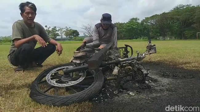 Tidak puas mengajar kedua pemuda hingga tidak berdaya, warga meluapkan kemarahannya membakar motor mereka. Polisi belum memberikan keterangan kasus dugaan penjambretan tersebut.