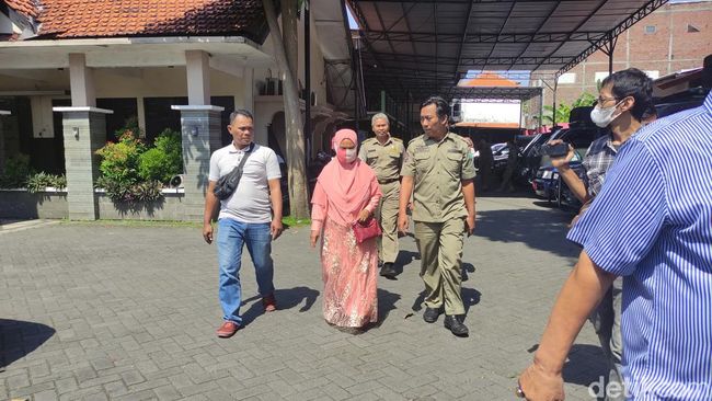 Pantauan detikJatim, Masriah tiba di Kantor Satpol PP Sidoarjo sekitar pukul 09.00 WIB. Masriah datang dengan didampingi Kades Jogosatru, Sugito.