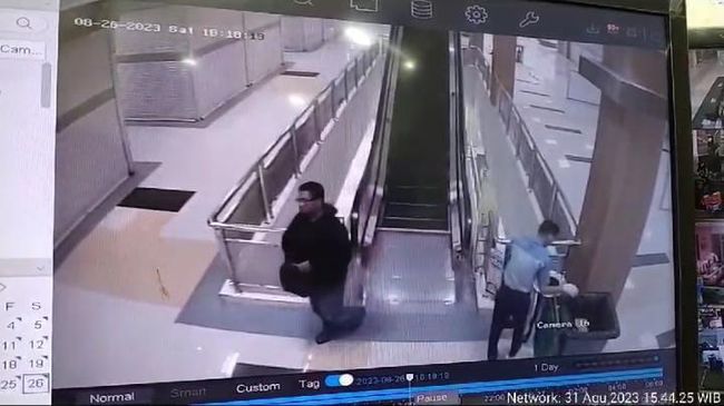 Namun, di saat sudah berada di lantai bawah dan temannya sudah pada pulang. Ia kemudian balik naik ke atas menuju toko. Tanpa ia sadari ternyata aksinya terekam CCTV.