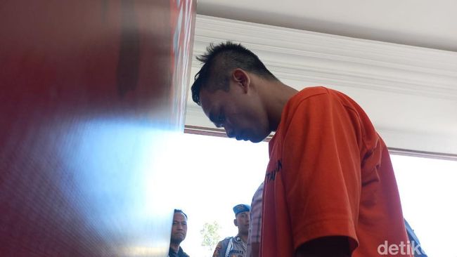 Polisi menunjukkan tampang Ribut Setyo Wahyudi (24) alias Tole, warga Dusun Sengkan, Desa Pucangsari, Purwosari, Kabupaten Pasuruan. Ribut merupakan sopir MPU yang merampok siswi SMKN Purwosari, Kabupaten Pasuruan. Ribut mengaku sudah dua kali beraksi.