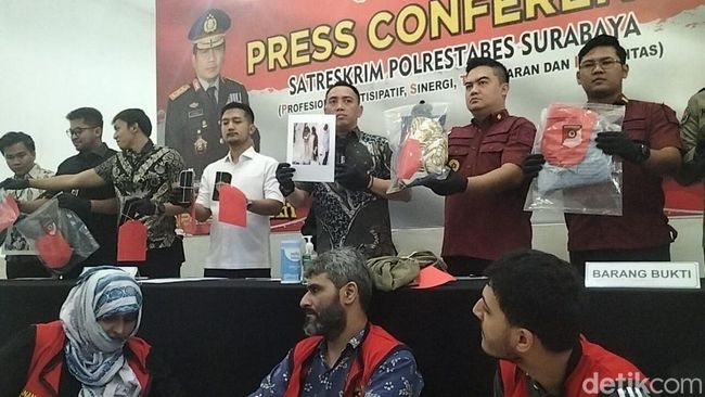 "Tersangka adalah warga negara Pakistan. Ada empat tersangka, satu keluarga," kata Kasat Reskrim Polrestabes Surabaya AKBP Mirzal Maulana saat rilis di Gedung Bharadaksa, Polrestabes Surabaya, Jumat (15/9/2023).