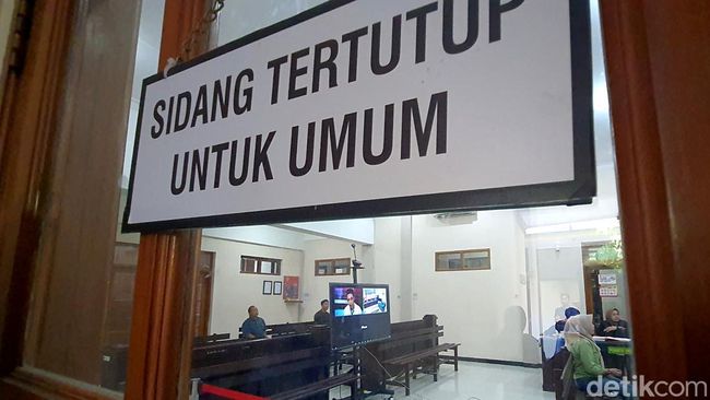 Sidang perdana kasus perzinaan Ipin dengan DEH berlangsung tertutup di Ruangan Cakra, Pengadilan Negeri (PN) Mojokerto sekitar pukul 13.40 WIB, Rabu (27/9/2023). DEH dihadirkan langsung di persidangan yang dipimpin Ketua Majelis Hakim Fransiskus Wilfrirdus Mamo.