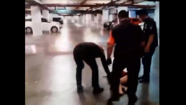 Video berdurasi 46 detik yang beredar melalui WhatsApp grup itu menunjukkan seorang wanita diduga Dini tergeletak di lantai parkiran mobil. Terlihat 3 orang satpam mengerubungi.