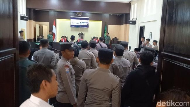 Petugas sebenarnya membolehkan dua massa yang hadir untuk masuk ke ruang sidang. Namun jumlahnya dibatasi. Sedangkan massa yang lainnya terkonsentrasi di halaman PN Sampang.