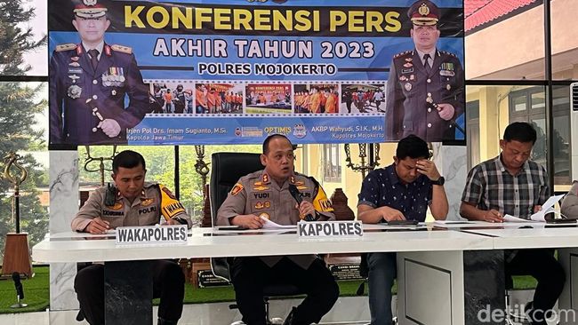Angka kejahatan di wilayah hukum Polres Mojokerto sepanjang 2023 turun signifikan dibandingkan tahun lalu. Pencurian dengan pemberatan (curat), penipuan dan penganiayaan mendominasi kriminalitas di Bumi Majapahit.