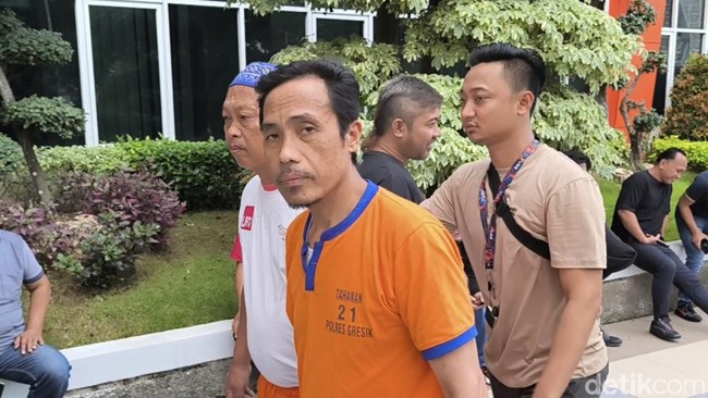 Dari pantauan detikJatim, NS keluar dari rumah tahanan menggunakan celana pendek dan kaos berwarna oranye bertuliskan Tahanan Polres Gresik. Ia diborgol dengan tahanan cabul lainnya menuju halaman Polres Gresik untuk mengikuti pers realese akhir tahun.