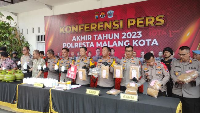 Polresta Malang Kota telah menuntaskan sebanyak 1.086 kasus kejahatan sepanjang tahun 2023. Prosentase penuntasan perkara 81,4 persen dari jumlah laporan polisi (LP) yang masuk di angka 1.334 perkara.