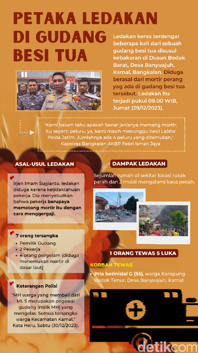 Setelah melakukan penyelidikan, polisi menetapkan 7 orang sebagai tersangka. Para tersangka adalah 4 penyelam yang mendapatkan mortir, 1 pembeli mortir, 1 pemilik gudang, dan 1 pekerja gudang.