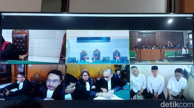 Kasi Intel Kejari Kota Malang Eko Budisusanto menjelaskan bahwa ketiga terdakwa menjalani sidang dengan agenda pembacaan tuntutan secara virtual dari Lapas Klas I Malang, Rabu (3/1/2024).
