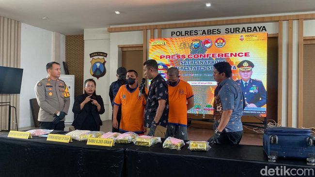 Wakasat Resnarkoba Polrestabes Surabaya Kompol Fadillah Panara menyebut saat disita sabu dikemas dalam 6 bungkus plastik teh Cina sedangkan ekstasi dibungkus dalam 50 klip plastik.