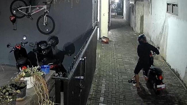 Setelah memastikan situasi aman, pelaku pun beraksi. Terlihat sebelum mengambil motor Scoopy itu pelaku lebih dulu mencopot sandal sekitar beberapa meter dari lokasi. Setelah itu, pelaku menuntun sepeda motor korban dan mengambil sandalnya lalu kembali tancap gas.