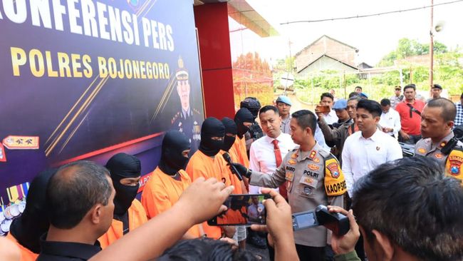 kesembilan pelaku yakni SH (22), JB (26), OE (26), RP (18), BW (23), RS (23), G (17), S (17), dan R (14). Mereka diringkus setelah Sat Reskrim Polres Bojonegoro melakukan penyelidikan dan pemeriksaan selama 3x24 jam.