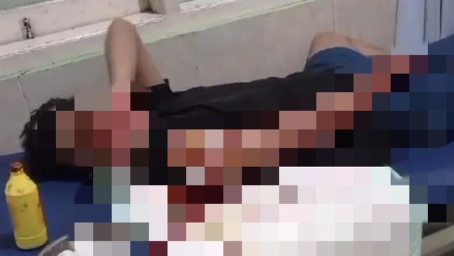 Tak berselang lama datang dari belakang tiga orang berboncengan naik Honda Vario hitam. Orang yang berada di tengah langsung mengarahkan sajam sejenis golok ke arah korban.