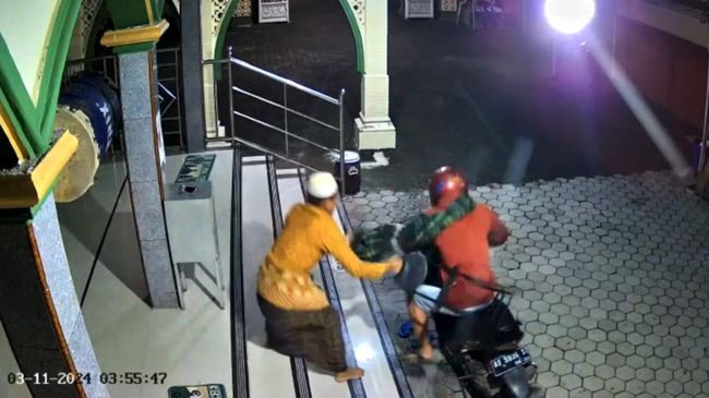 Karena kejadian itu, dia pun secara spontan mengambil kursi di dalam masjid dan berusaha memukulkan kursi ke pelaku. Pelaku yang kaget berusaha kabur dengan menaiki motor Suzuki Spin.