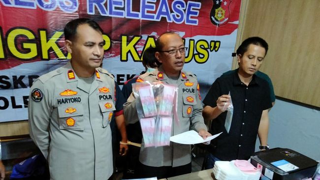 "Ketahuannya pas bayar hotel, HS (Hasan) pakai uang palsu, saat kita datang ternyata sisanya masih banyak di pakaiannya," kata Eko saat konferensi pers di Polsek Gubeng Surabaya, Kamis (14/3/2024).