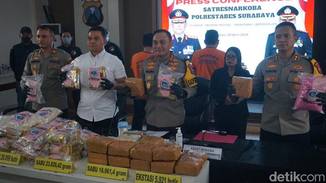 Kapolrestabes Surabaya Kombes Pasma Royce mengatakan puluhan kilogram sabu dan puluhan ribu pil ekstasi tersebut disita dari sindikat narkoba jaringan Sumatera-Jawa. Pengungkapan itu dilakukan di 3 lokasi.