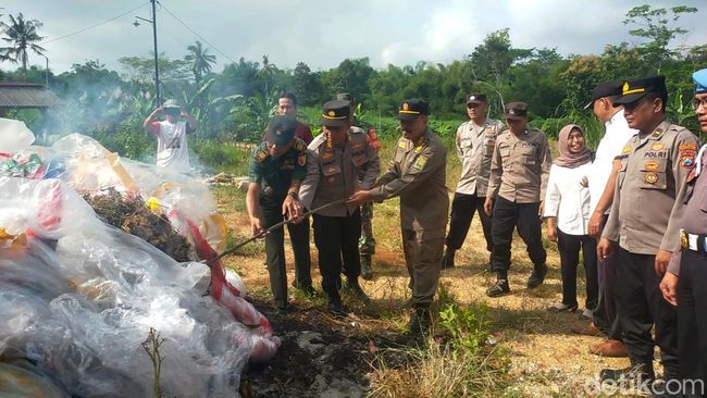 Proses pemusnahan balon dilakukan dengan cara dibakar di lokasi TPA terpadu Desa Banaran. Sedangkan untuk petasan dihancurkan dengan direndam air.