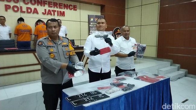 Direktur Reskrimum Polda Jatim Kombes Totok Suharyanto memaparkan rangkaian peristiwa penembakan itu terjadi Minggu (19/5) dini hari dan Selasa (21/5) pagi. Ada 2 kejadian di masing-masing hari itu.