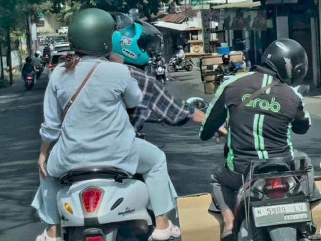 Terlihat dalam video itu, pria pemukul driver ojol itu sedang memboncengkan seorang perempuan naik sepeda motor Yamaha Filano berpelat nomor N 2536 EGE.