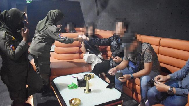 Petugas gabungan merazia Rekreasi Hiburan Umum (RHU) di Surabaya. Kali ini, petugas gabungan dari BNN hingga Satpol PP Kota Surabaya merazia para pengunjung Real-X di Jalan Jemursari dan Blue Angels di Manyar Kertoarjo.