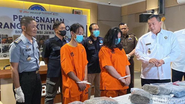 Kepala BNNP Jatim Brigjen Mohammad Aris Purnomo mengatakan kedua pelaku ditangkap setelah menerima dua paket berisi ganja yang dibungkus plastik.