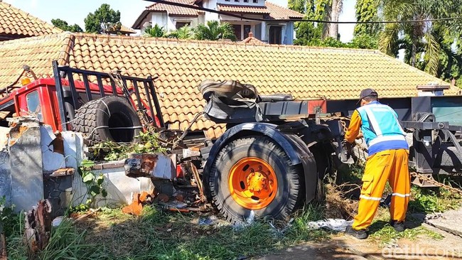 Pada saat jalan menurun bergerak ke kanan menaiki median jalan dan memasuki jalur berlawanan, selanjutnya menabrak dua motor dari arah berlawanan lalu menabrak rumah. Kecelakaan diduga kuat karena rem truk blong.