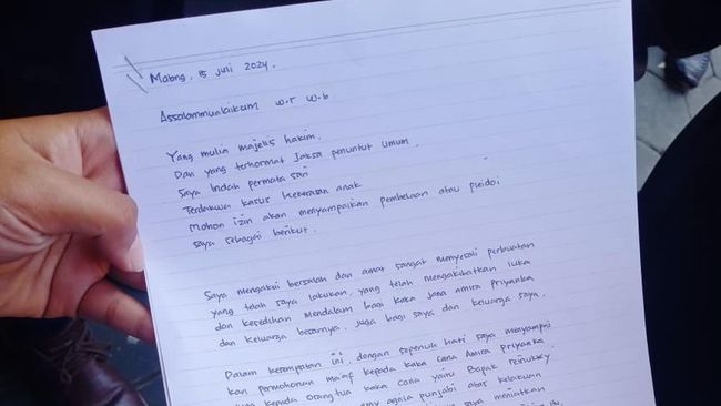 "Untuk pleidoi yang dibacakan itu dibuat dan ditulis sendiri pada dua lembar kertas oleh terdakwa. Dalam membacakan pleidoi tersebut terdakwa menangis," ujar Haitsam kepada wartawan, Kamis (17/7/2024).