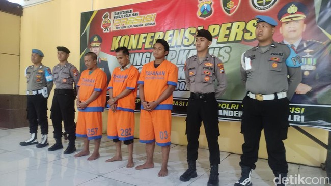 Mereka yakni M Nurhadi (41) warga Gedangan Sidoarjo. Lalu Dino Bagus Guntur Setiaji (19) dan Sutaji (47) yang keduanya warga Kedung Jaya Kelurahan Sememi Benowo Surabaya.