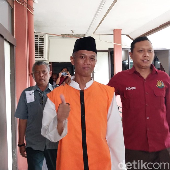 Senyum Rahman pun tampak terus mengembang selama perjalanan menuju ruang tahanan di PN Malang. Ia bahkan memberikan tanda jempol kepada wartawan yang terus mengikutinya.