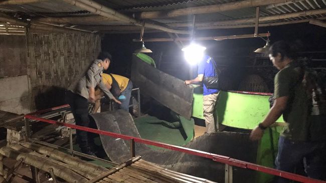 Sementara saat dilakukan penggerebekan, polisi menemukan gubuk yang diubah menjadi arena sabung ayam. Di dalamnya, terdapat tempat berukuran 4 x 6 meter yang dilengkapi dengan pembatas dari gabus dan karpet hijau sebagai alas.