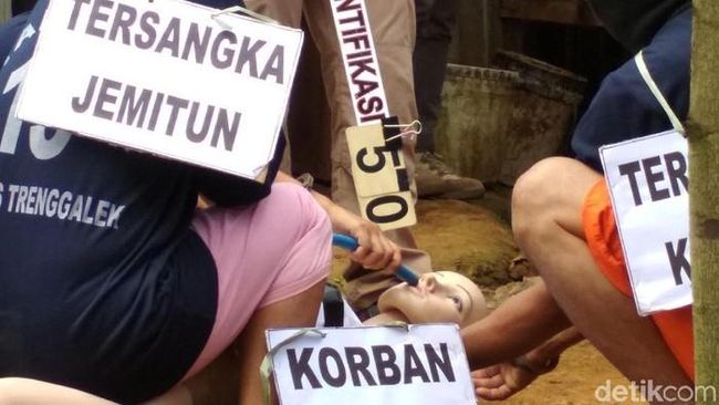 "Ibu saya mengeluh sakit perut dan dada, dia yang minta sendiri untuk diobati. Tujuan dimasukkan air dan ikan teri agar bisa sembuh dan penyakitnya keluar," kata Rini dalam jumpa pers di Mapolres Trenggalek saat itu.