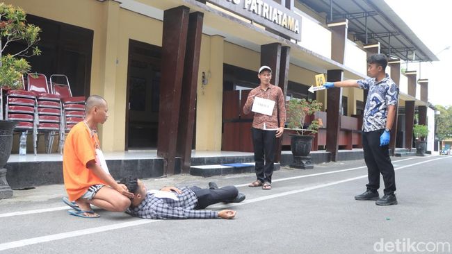 Pantauan detikJatim, rekonstruksi digelar di halaman Mapolres Blitar Kota, Jumat siang (18/10/2024). Sejumlah saksi yang merupakan santri sekaligus teman korban dihadirkan dalam rekonstruksi itu. Sementara MUA (28) yang telah ditetapkan sebagai tersangka tampak menggunakan baju tahanan.