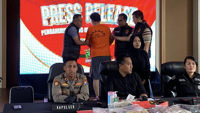"Yang bersangkutan (korban) ada cekcok dengan tersangka. Kemudian tersangka menyuruh korban mengambil air minum dan ngobrol di ruang tamu. Tetapi saat korban berjalan ke belakang, tersangka mengambil piringan atau plat barbel seberat 5 kilogram," jelas Aris dalam konferensi pers, Kamis (21/11/2024).