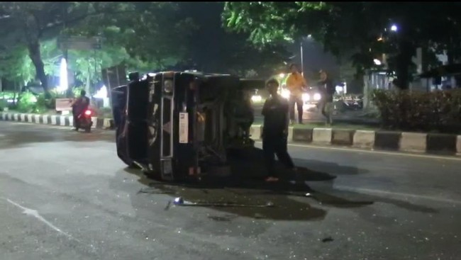 Para pelaku yang berjumlah dua orang sempat melarikan kendaraan tersebut dengan kecepatan tinggi. Namun tidak lama kemudian, mereka menabrak beton median jalan di Jalan Raya Porong dan terguling.