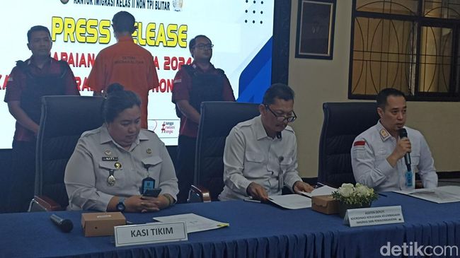 "Kami mengamankan satu WN Malaysia, yakni HA (44). Dia terindikasi overstay, sebelumnya berada di Tulungagung tinggal bersama keluarga dari istrinya," kata Kepala Kantor Imigrasi Kelas II Non TPI Blitar, Arief Yudistira saat press conference, Rabu (18/12/2024).