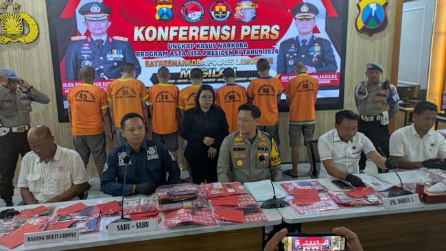 "Total barang bukti yang berhasil diamankan oleh petugas dari Satresnarkoba Polres Lamongan adalah sabu-sabu seberat 117,86 gram, 14.098 butir pil dobel L, dan 7,87 gram ganja," kata Kapolres Lamongan AKBP Bobby A Condroputra kepada wartawan saat konferensi pers di Mapolres Lamongan, Selasa (24/12/2024).