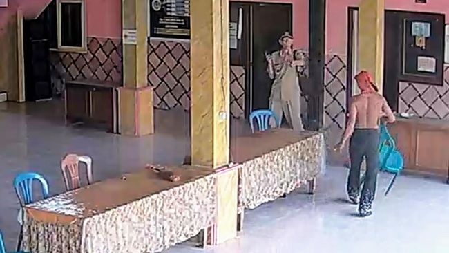 Bukan cuma itu saja. Bahkan, pelaku juga memukul salah seorang perangkat desa setempat menggunakan kursi alat.