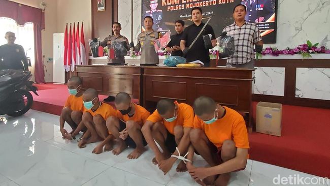"Enam pelaku kami amankan di 3 tempat berbeda pada 10 Januari 2025, yaitu di Surabaya, Sidoarjo dan Bali. Pelaku AZ masih buron," jelasnya saat jumpa pers di Mapolres Mojokerto Kota, Jalan Bhayangkara, Kamis (16/1/2025).