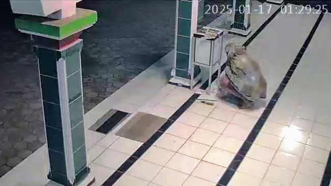 Aksi pencurian kotak amal masjid di Bondowoso terekam CCTV. Pelaku sengaja menutupi wajahnya agar tak terdeteksi.