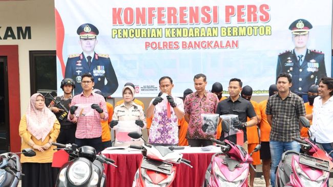 Satreskrim Polres Bangkalan berhasil meringkus 9 pelaku pencurian motor. Para pelaku beraksi di 8 kasus berbeda.