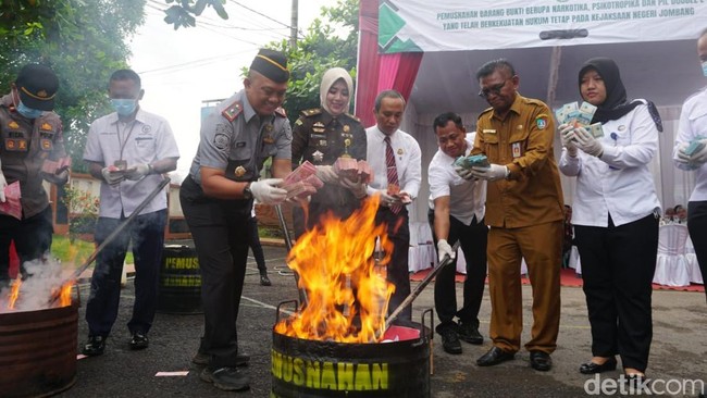 "Kami laksanakan pemusnahan berdasarkan perintah pengadilan. Tata caranya berbeda, ada yang dibakar, dilarutkan dengan air, ada yang dihancurkan sampai tak bisa dipakai lagi," kata Kepala Kejari Jombang Nul Albar kepada wartawan di lokasi, Senin (24/2/2025).
