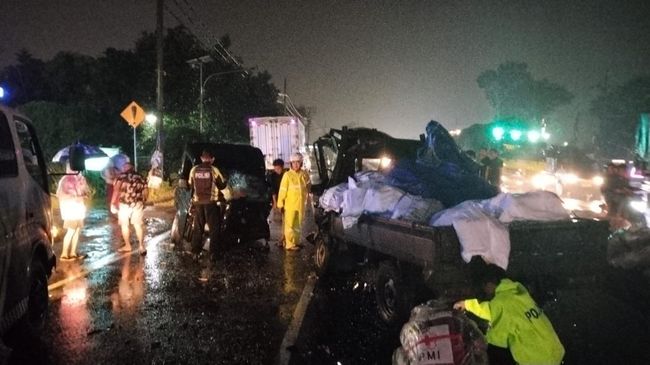 "Pengemudi kedua pikap menderita luka-luka, kami evakuasi ke RS Sido Waras, Mojokerto," tandasnya