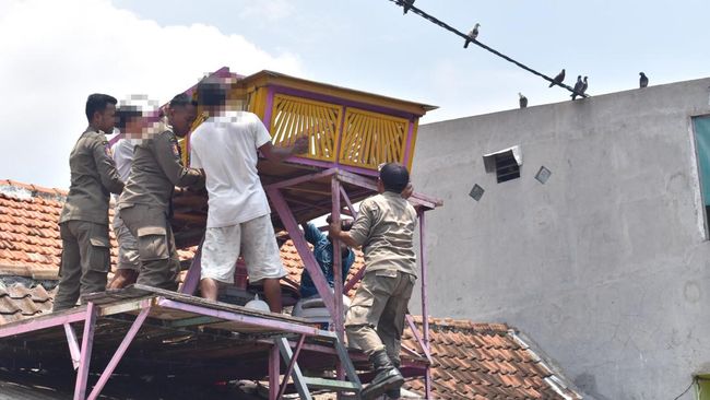 Petugas pun berhasil menertibkan 7 bekupon. Seluruh bekupon itu dibongkar dan diturunkan dari atap rumah warga.