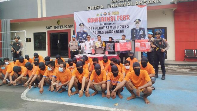 "Untuk yang TO ada judi konvensional 13 tersangka, judi online 5 tersangka, premanisme 2 tersangka, kasus handak 2 tersangka dan kasus narkoba 6 tersangka," ujar Hendro, Senin (10/3/ 2025).