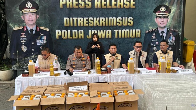 Lokasi penimbunan dan pengemasan Minyakita di Sampang dan Surabaya digerebek Ditreskrimsus Polda Jatim. Penggerebekan dilakukan karena praktik penjualan tak sesuai dengan harga eceran tertinggi (HET) dan tak berizin.