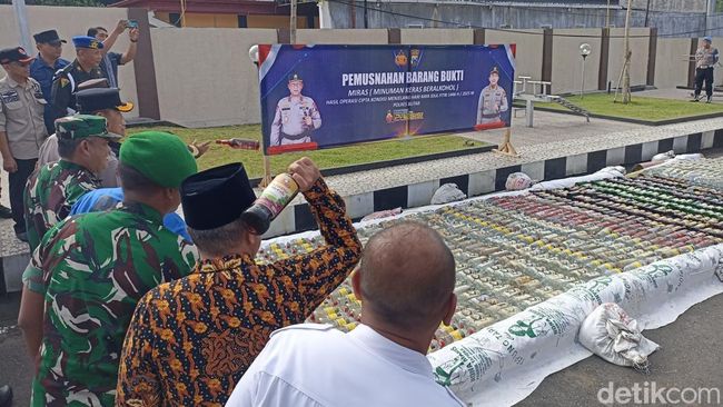 Okta menyebut, ada sekitar 3.062 botol miras berbagai merk yang dimusnahkan. Rinciannya 2.527 botol jenis arak, 184 botol merk TM, 136 botol merk bintang kuntul, dan 86 botol merk anggur merah (amer).